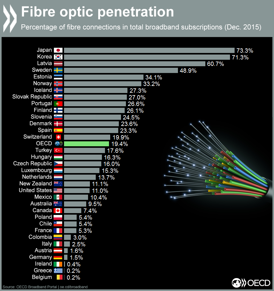 世界の光ファイバー普及率